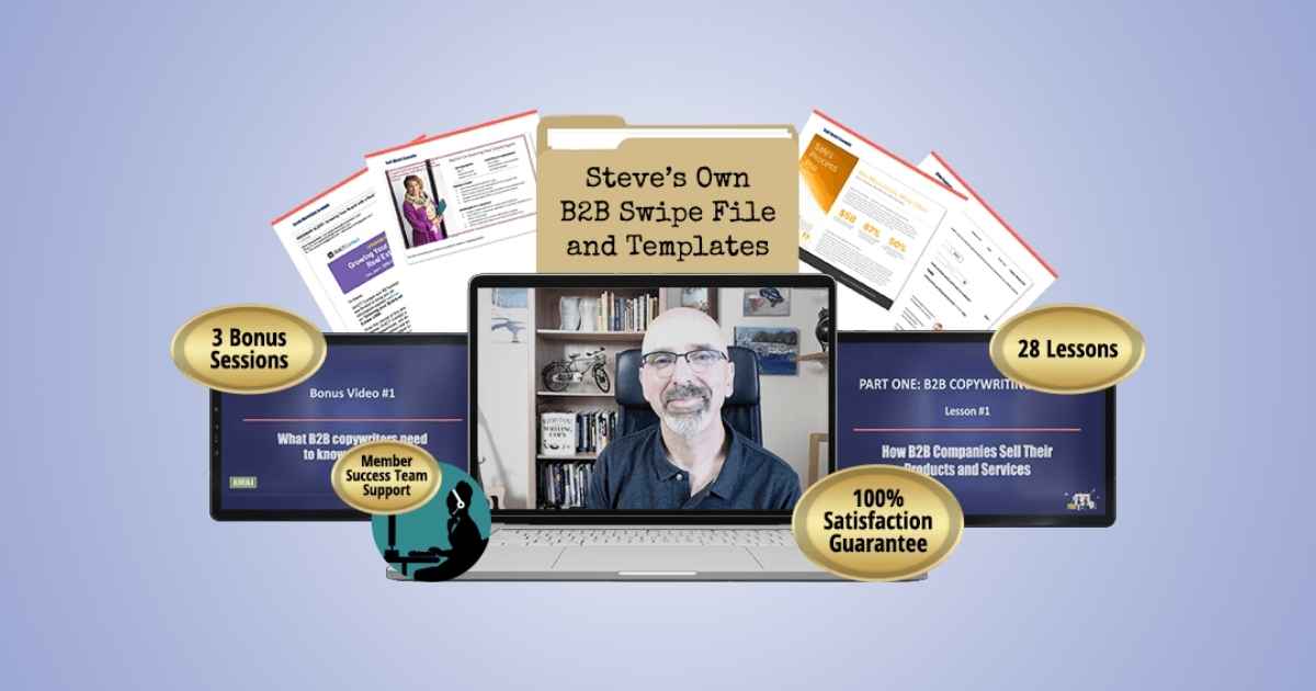 And Steve’s Modern B2B Copywriting is everything you need — a complete “writer’s business in a box.”